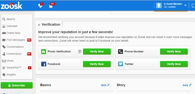 Zoosk offers multiple verification layers: