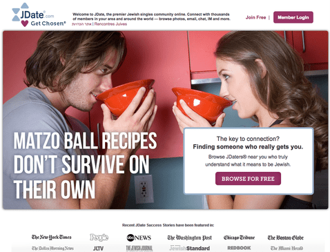 JDate calls itself “the first and largest Jewish dating community,” built to help you find a real connection—not a fling. If Judaism is part of your life (in any way), JDate is where like-minded singles gather to date seriously, make friends, and sometimes find “the one.” Want to try JDate? Sign up here.
